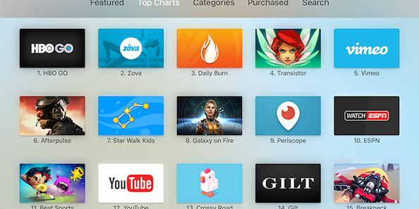 With a little over 1,000 apps developed, the Games category is clearly dominant on the Apple TV App Store, followed by Entertainment (streaming video and movies). Still, the company isn’t expecting to unseat the likes of Xbox and Playstation, but is targeting more casual gamers.