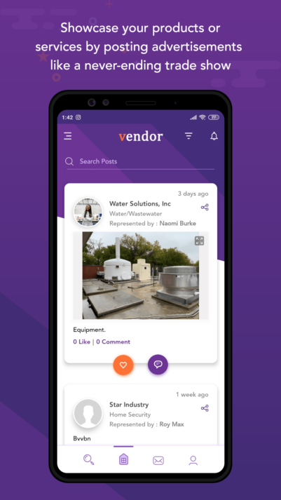 Vendor was created by engineers, medical professionals, and business managers to create a more efficient process for consumers (and other vendors) to find the products and services they need and directly connect with their sales representatives. The app creates an environment similar to a never-ending virtual trade show that allows vendors or sales reps to showcase their latest products through the app’s homepage and allows consumers and other vendors to view, like, or comment on those posts or advertisements. View the Vendor case study.