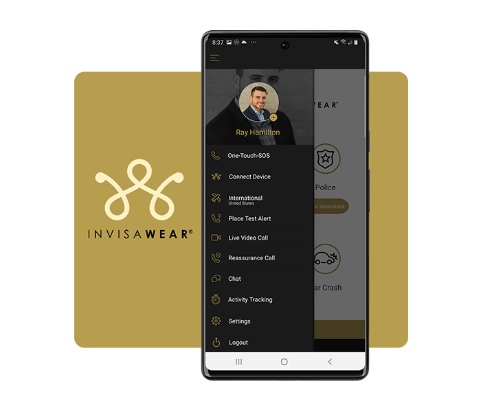A companion mobile application that connects to Invisawear smart jewelry, allowing users to trigger emergency alerts when assistance is needed.